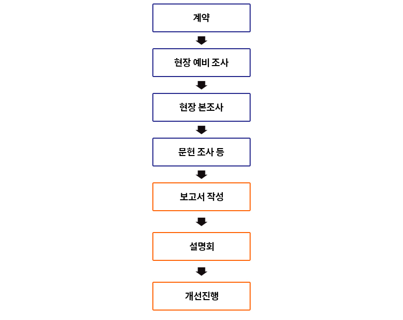 쾌적한 작업환경은 생산성 중대, 업무능률을 극대화할 수 있는 필수요소로써 우수한 전문 인력과 측정장비 및 전문프로그램을 활용하여 작업환경 및 문제점을 진단하고 개선안을 도출한다.